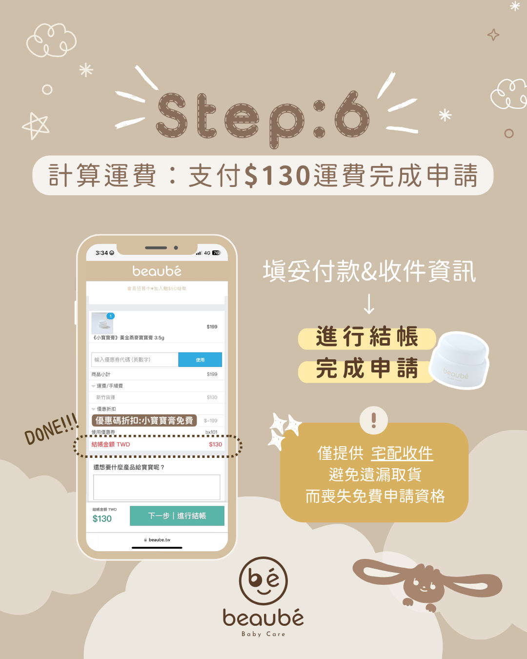 6. 計算運費 → 僅需支付 $130 運費即完成申請!