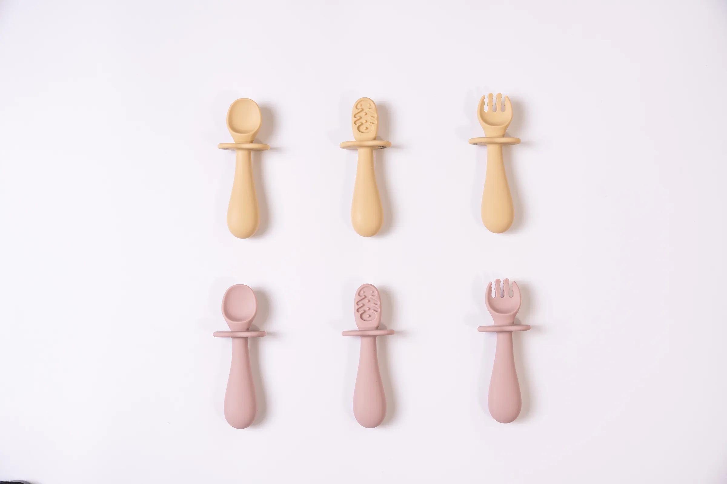 - 訓練寶寶抓握力!握柄前端的防護檔片為了避免寶寶過度深入口腔內,同時在湯叉平放餐桌時不易滾落,保持餐具衛生!