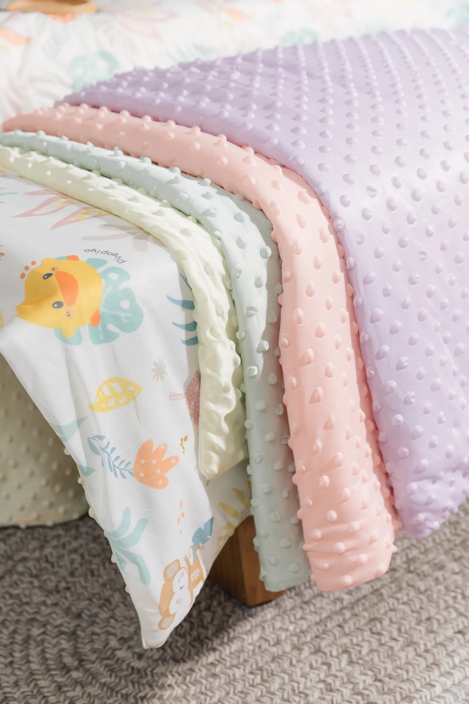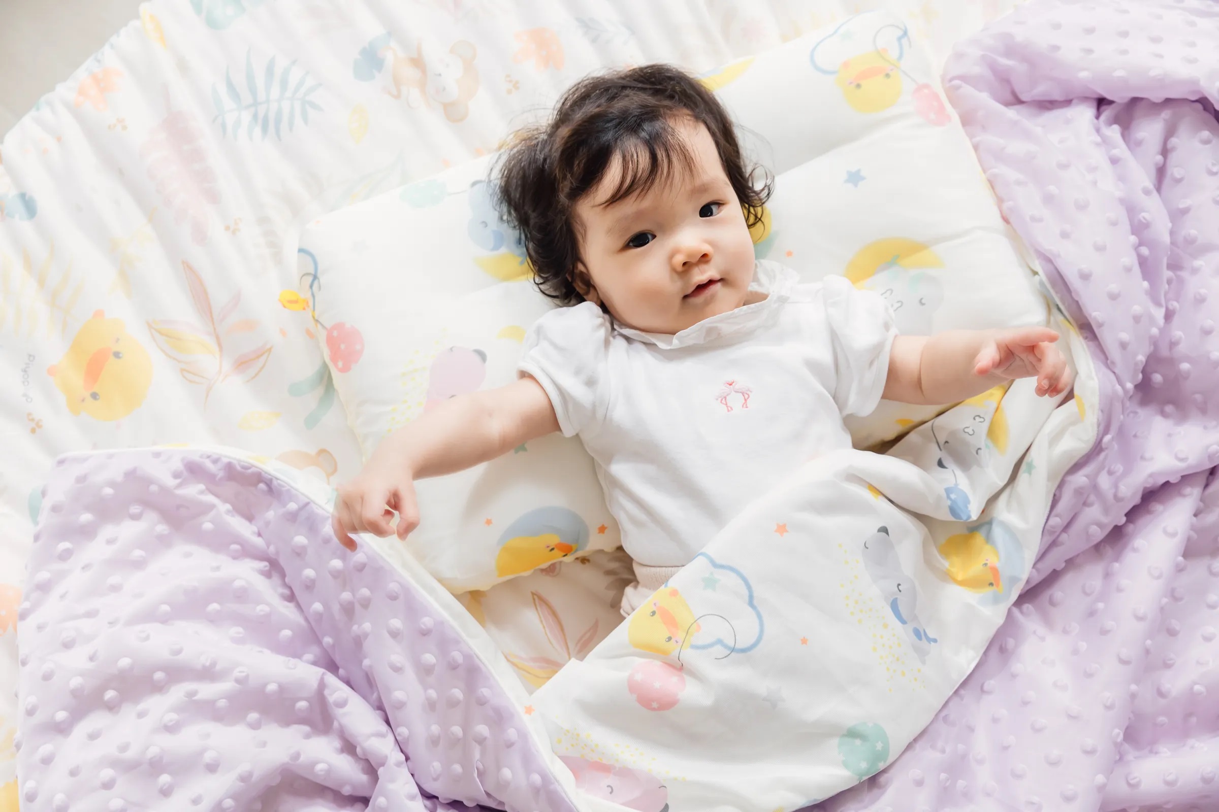 - 3D立體逗趣顆粒,讓寶寶透過揉搓、撫摸逗逗的方式來安撫小情緒,能幫助寶寶在極致舒適的柔軟觸感中安穩睡眠。