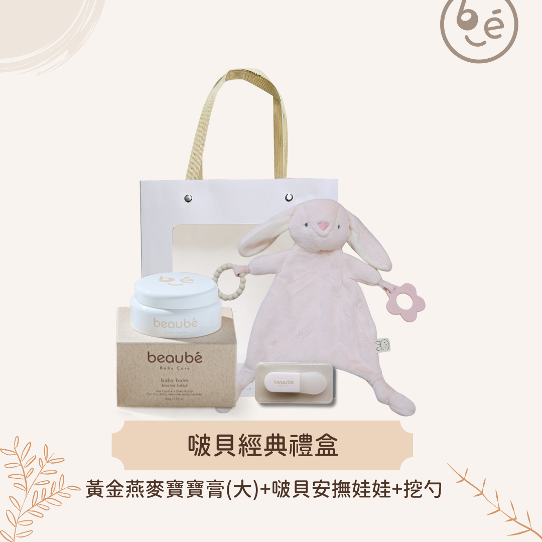 禮盒內容|黃金燕麥寶寶膏35g+挖勺+安撫娃娃(啵貝兔/啵貝羊)